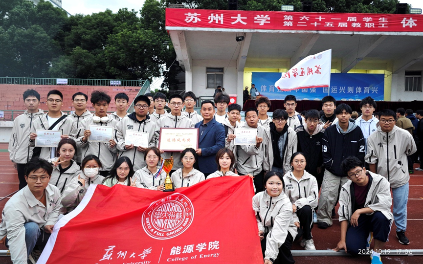 10月19日下午,校运会圆满闭幕。为期两天的比赛,在学院师生的共同努力下,91直播 在本届学生运动会中以成绩总分87.5分取得历史性突破,位列第十,女子团体总分第七首次进入全校前八,再次摘得道德风尚奖,充分体现了能源人团结、拼搏、奋进的精神。